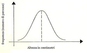 Se per esempio voglio rilevare una caratteristica come l’altezza in una determinata popolazione, probabilmente il risultato che otterrò sarà rappresentabile in questo modo: